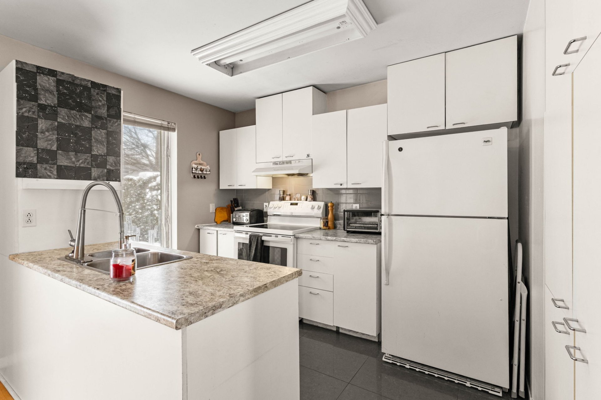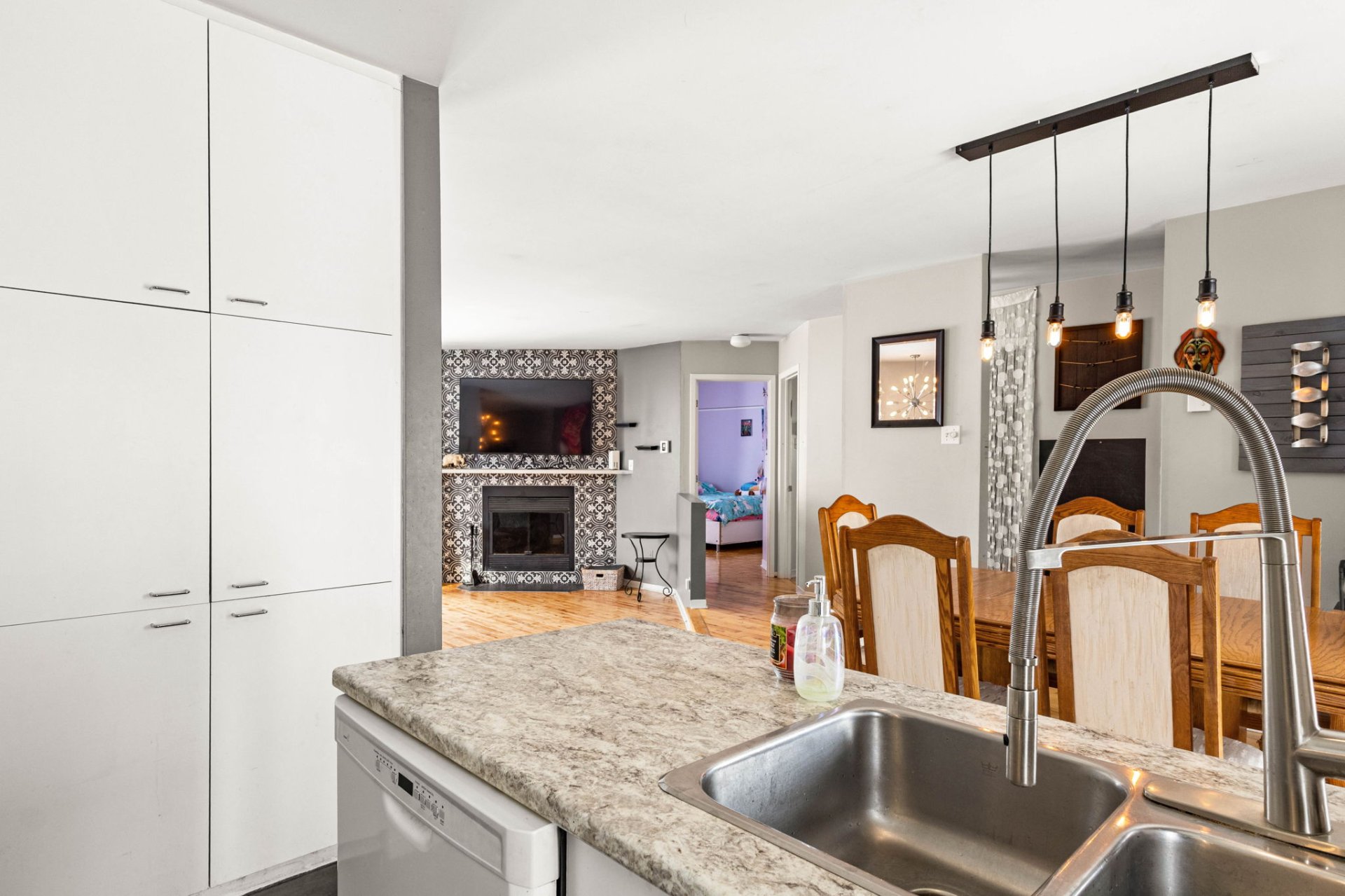 Dès l'entrée, vous découvrirez un espace de vie lumineux et convivial, pensé pour la vie de tous les jours comme pour les moments partagés. Les aires communes offrent une belle fluidité entre les pièces, créant une atmosphère chaleureuse et fonctionnelle. La cuisine propose un espace de rangement appréciable et s'ouvre sur la salle à manger, idéale pour recevoir famille et amis. Les pièces de vie sont confortables et invitantes, permettant de profiter pleinement de chaque saison dans un cadre agréable.